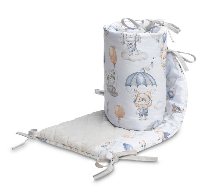 Posteljna obroba je popoln dodatek k otroški opremi, ki zagotavlja varnost, udobje in estetski videz otroške sobe. Mehko polnilo iz silikonskih vlaken ščiti otroka pred udarci ob letvice posteljice in hkrati izolira pred hladno steno.