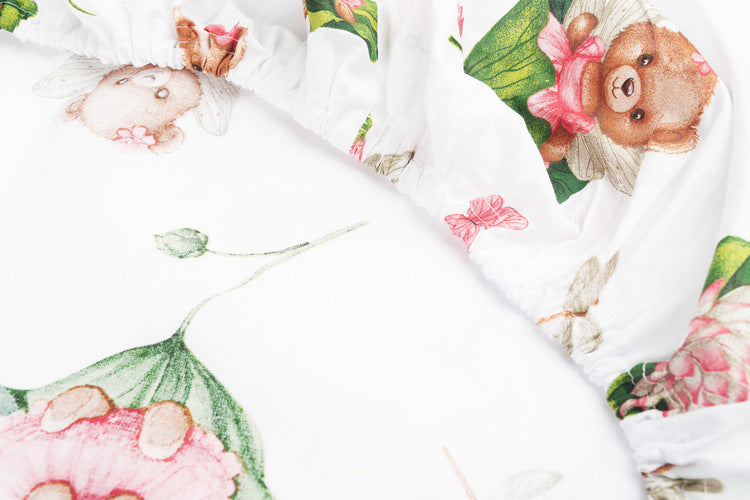 Potiskane rjuhe so izdelane iz najkakovostnejšega in na dotik prijetnega bombaža. Otrokom zagotavljajo udobno spanje, guma, všita po celotni dolžini, pa omogoča enostavno preoblačenje in popolno prileganje vzmetnici dimenzij 120 × 60 cm.