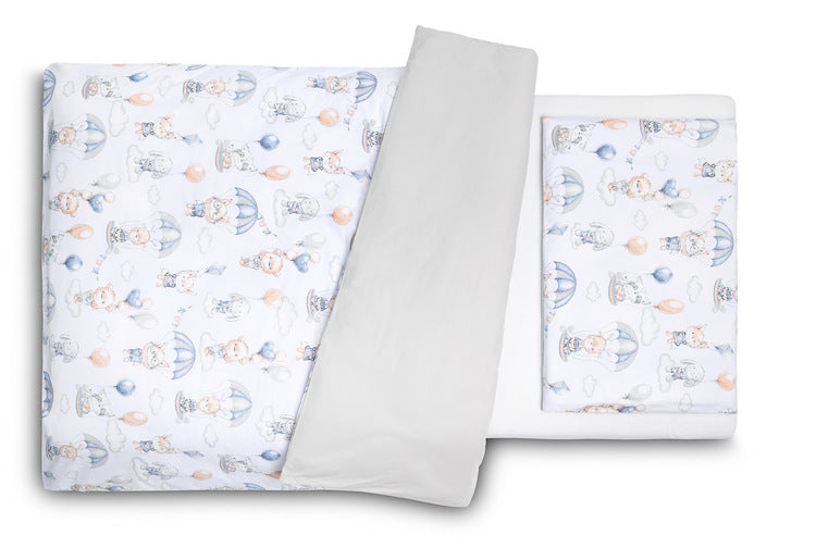 Otroška posteljnina je izdelana iz prijetnega in trpežnega 100 % bombaža, ki je nežen do otroške kože. Sodobne barvne kombinacije se lepo podajo v vsako otroško sobo. Set vsebuje prevleko za odejo velikosti 100 × 135 cm in prevleko za vzglavnik velikosti 40 × 60 cm. Prevleki se zapirata z zadrgo za enostavno uporabo.