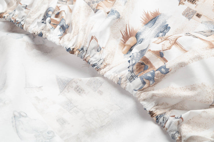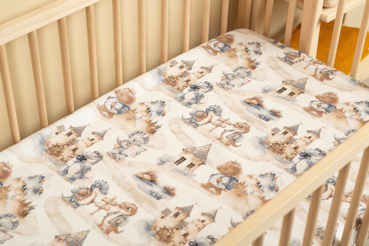 Poskrbite za miren spanec svojega malčka s praktično in mehko rjuho. Pastelni odtenki v kombinaciji z očarljivimi potiski ustvarjajo čarobno vzdušje v otroški sobi.