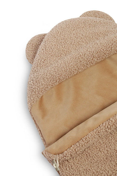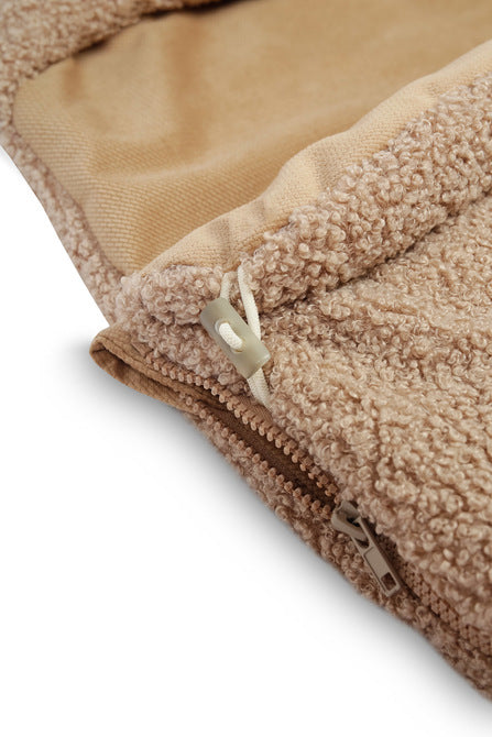 Die polnische Produktion garantiert höchste Qualität und Sicherheit – die Tasche besteht aus zertifizierten, hautfreundlichen Materialien. Das Innere ist aus besonders weichem Samt gefertigt, der die Haut Ihres Babys sanft umhüllt, während das Äußere aus Bouclé-Gewebe effektiv vor Wind und Kälte schützt und mit seiner eleganten, flauschigen Textur besticht.