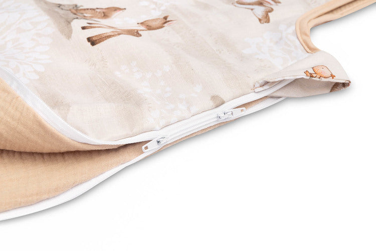 Notranjost in hrbtna stran spalne vreče sta izdelani iz muslinastega bombaža. Izdelek ne vsebuje trdih elementov, ki bi lahko dražili otrokovo kožo. Opremljena je z dvostransko zadrgo, ki poteka okoli spalne vreče in omogoča menjavo plenice, ne da bi otroka vzeli iz spalne vreče.