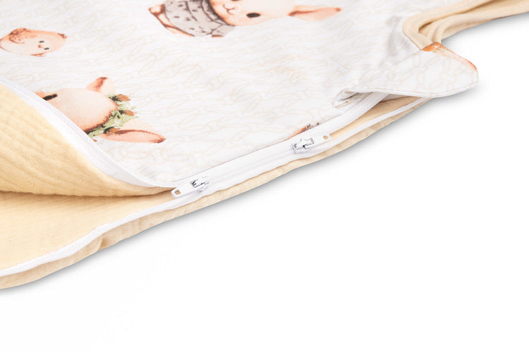 Notranjost in hrbtna stran spalne vreče sta izdelani iz muslinastega bombaža. Izdelek ne vsebuje trdih elementov, ki bi lahko dražili otrokovo kožo. Opremljena je z dvostransko zadrgo, ki poteka okoli spalne vreče in omogoča menjavo plenice, ne da bi otroka vzeli iz spalne vreče.
