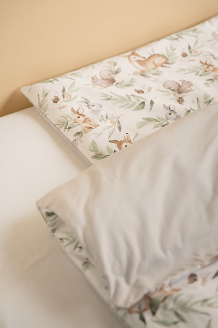 Otroška posteljnina je izdelana iz prijetnega in trpežnega 100 % bombaža, ki je nežen do otroške kože. Sodobne barvne kombinacije se lepo podajo v vsako otroško sobo. Set vsebuje prevleko za odejo velikosti 100 × 135 cm in prevleko za vzglavnik velikosti 40 × 60 cm. Prevleki se zapirata z zadrgo za enostavno uporabo.