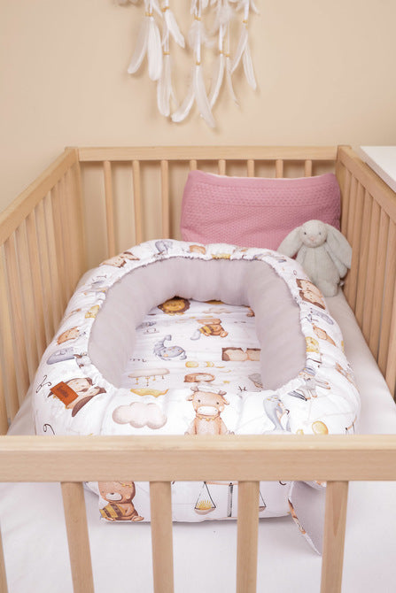 Otroško gnezdece je namenjeno dojenčkom od rojstva do približno 6. meseca starosti. Mehko objame otroka in omeji njegov prostor, kar mu daje občutek varnosti in bližine – podobno kot v maminem trebuščku.