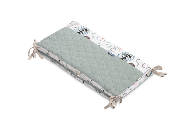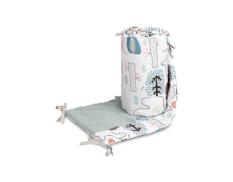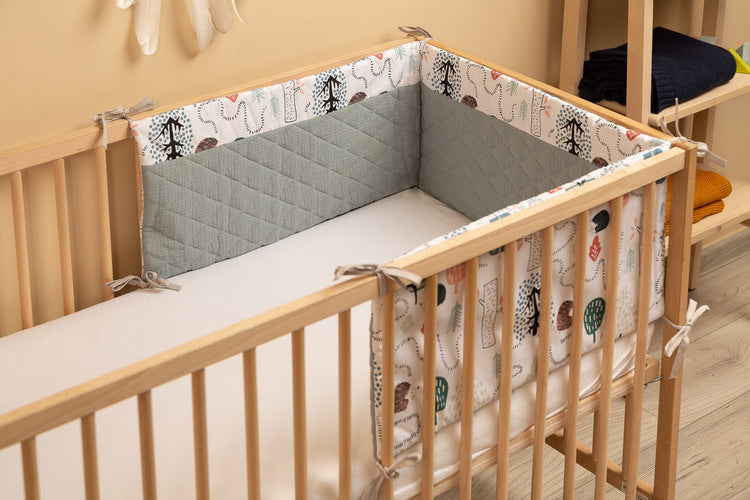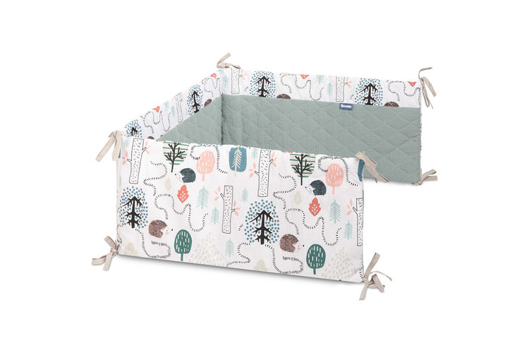 Zaščitite posteljico vašega malčka z mehko in prikupno obrobico Hedge. Izdelana iz 100 % bombaža in prijetnega muslina, obrobica nudi udobje, varnost in estetski pridih v otroški sobici. Polnilo iz poliestra ublaži morebitne udarce ob ograjice, trakovi pa zagotavljajo stabilno pritrditev. Primerna za standardne posteljice dimenzij 120 × 60 cm.