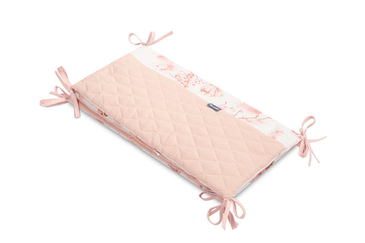 Zaščitite posteljico vašega malčka z mehko in prikupno obrobico Fairy. Izdelana iz 100 % bombaža in prijetnega muslina, obrobica nudi udobje, varnost in estetski pridih v otroški sobici. Polnilo iz poliestra ublaži morebitne udarce ob ograjice, trakovi pa zagotavljajo stabilno pritrditev. Primerna za standardne posteljice dimenzij 120 × 60 cm.