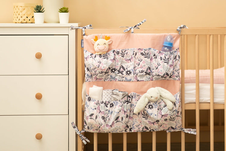 Organizator za posteljico „Butterflies” je praktičen dodatek, ki omogoča urejeno shranjevanje otroških pripomočkov, hkrati pa z nežno barvo in ljubkim motivom doda sobici topel in sodoben pridih.