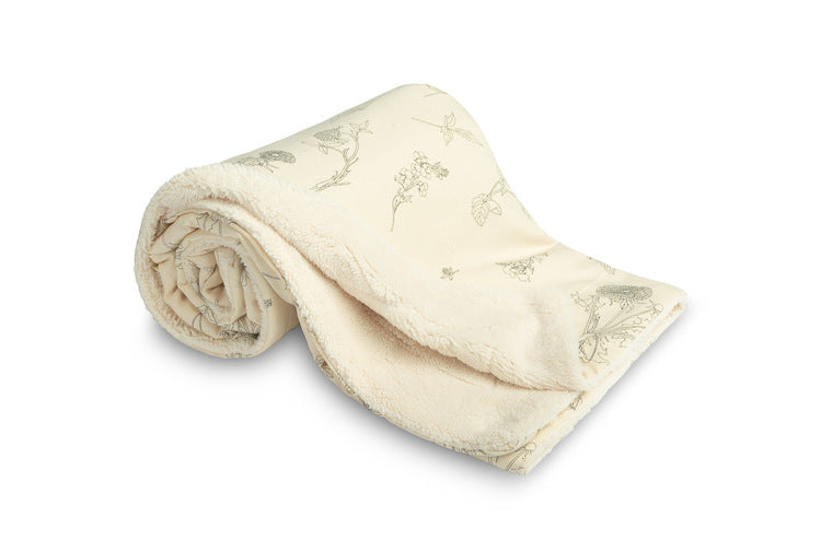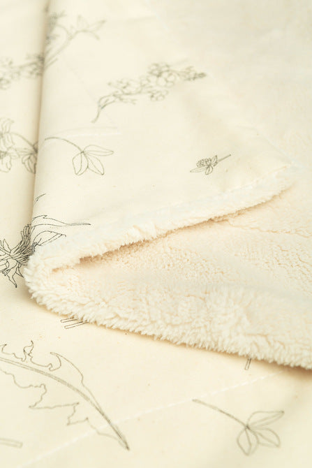 Eco odeja s plišasto notranjo plastjo je odlična izbira za nekoliko hladnejše dni. Izdelana je iz kombinacije mehkega pliša in 100 % bombaža z nežnim rastlinskim vzorcem, ki daje odeji naraven in umirjen videz.
