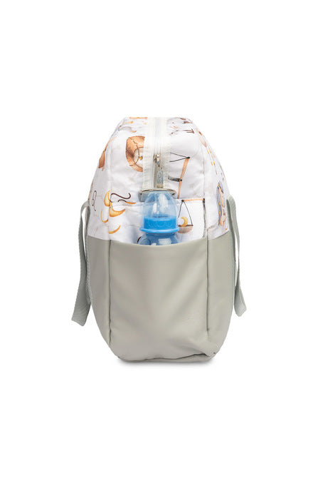 Torba Sensillo je opremljena s prilagodljivimi naramnicami, dolgim ramenskim trakom ter dvema ročajema, ki omogočata enostavno pritrditev na ročaj vozička – za maksimalno udobje in svobodo gibanja.