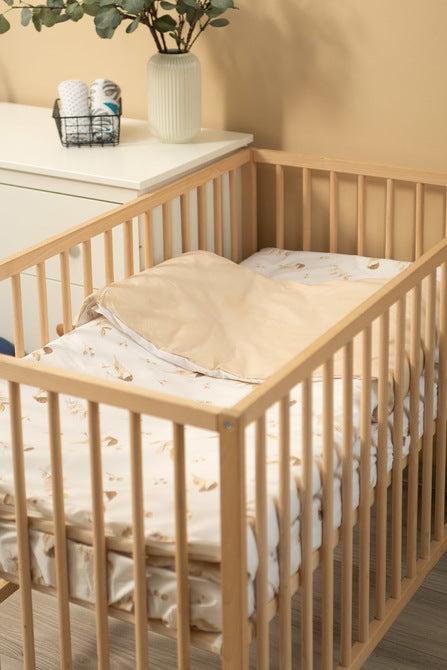 Komplet vključuje prevleko za odejo, prevleke za vzglavnik in rjuho z elastiko. Narejen je iz prijetnega in trpežnega 100% bombaža. Namenjen je posteljam dimenzij 120x60 cm.