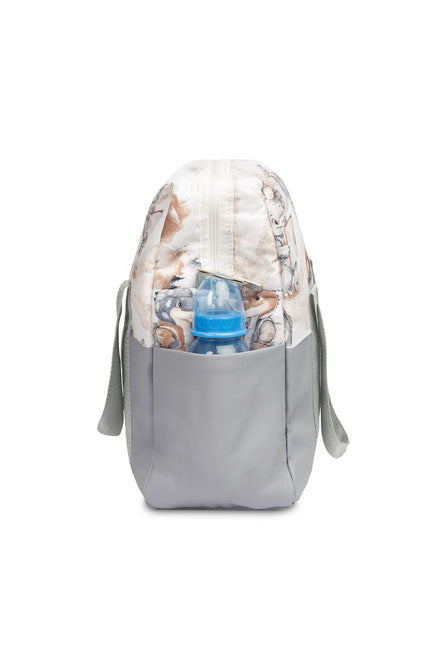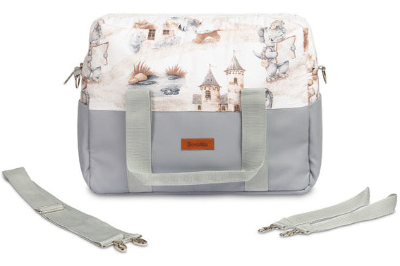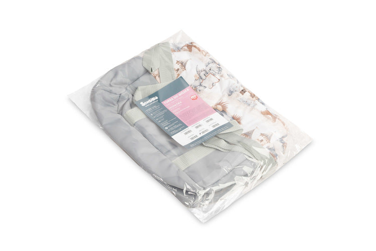 Torba Sensillo je opremljena s prilagodljivimi naramnicami, dolgim ramenskim trakom ter dvema ročajema, ki omogočata enostavno pritrditev na ročaj vozička – za maksimalno udobje in svobodo gibanja.